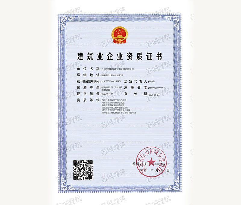 蘇州市蘇城建筑安裝工程有限責任公司,擁有主項建筑工程施工總承包一級資質(zhì),增項市政公用工程施工總承包二級資質(zhì)和建筑裝修